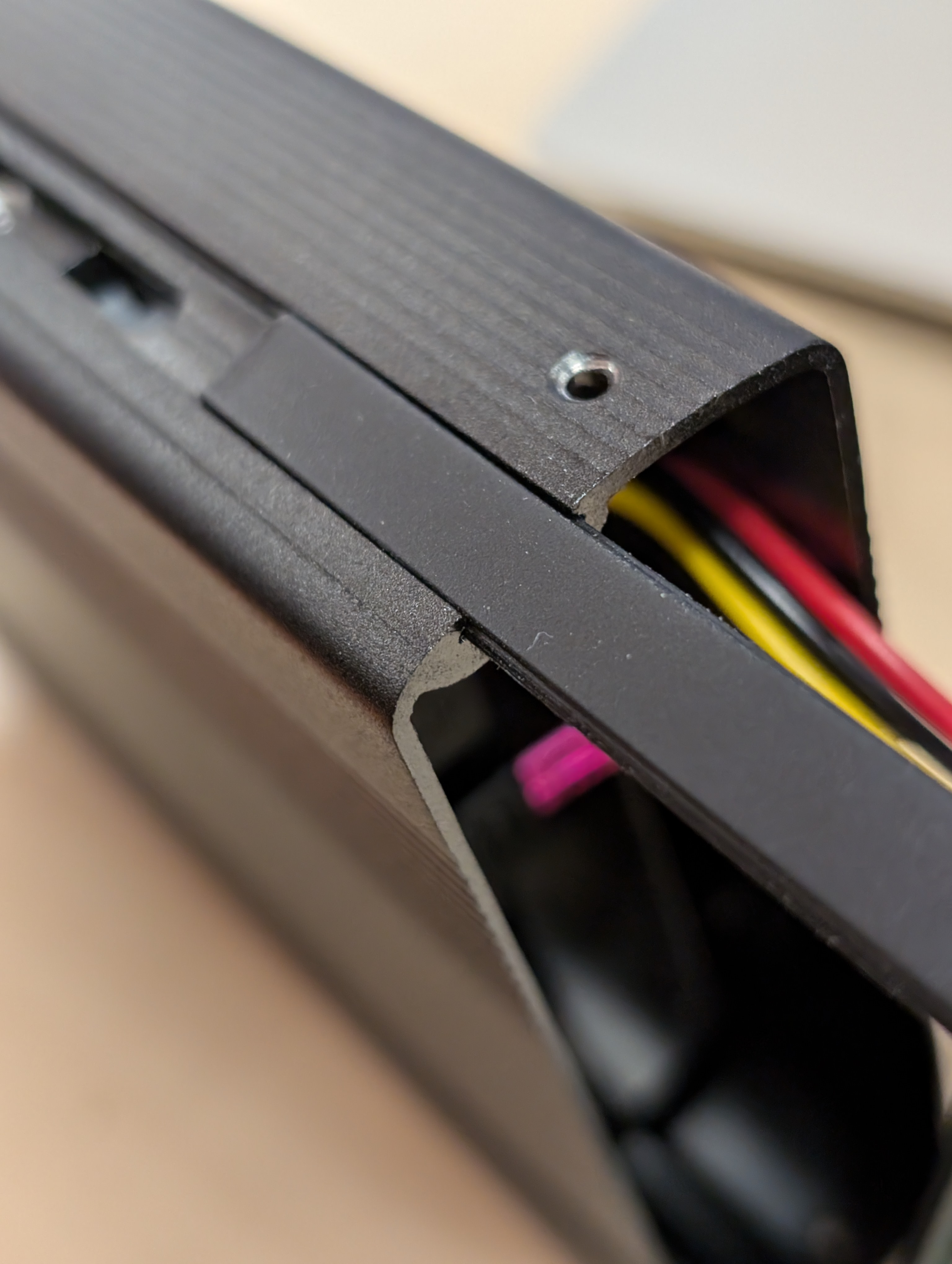 Controleer dat de schroefgaten op de harde schijf op de correcte kant zijn, en schuif de harde schijf in de enclosure.