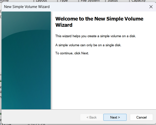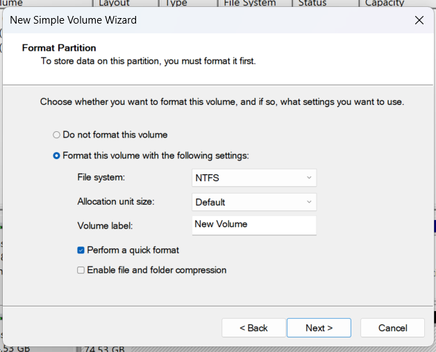 Als Windows de schijf niet gelijk herkend dan moet de schijf geformatteerd worden.