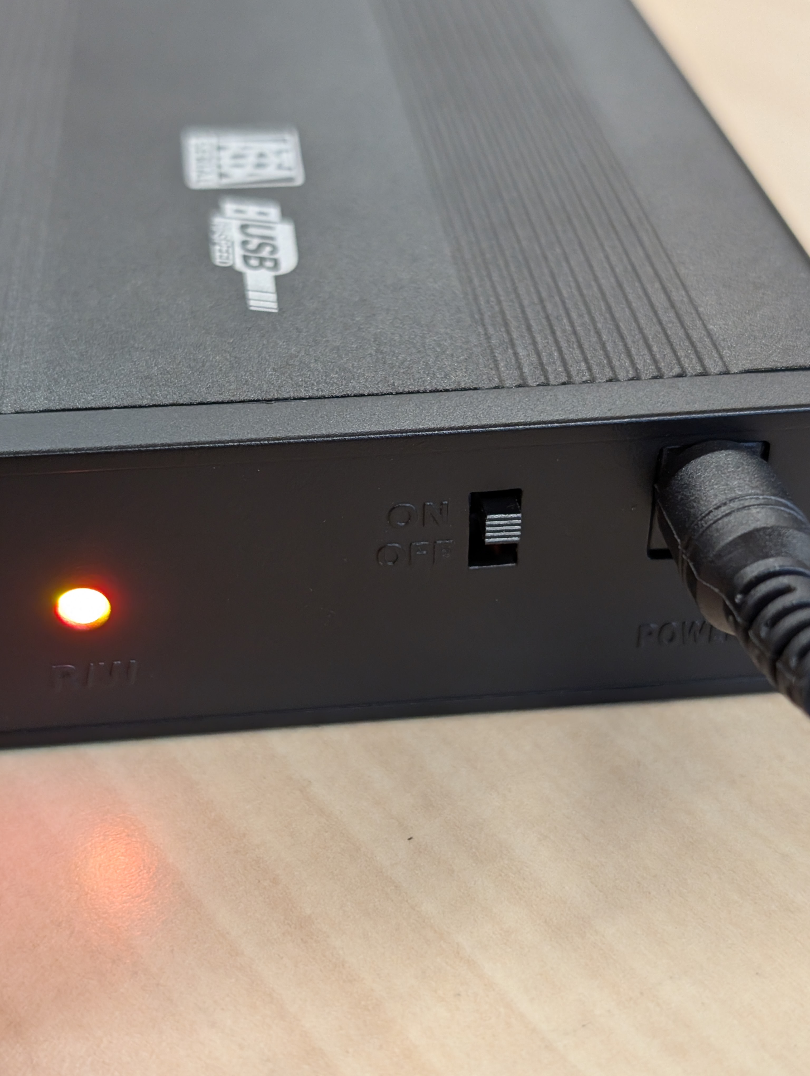 Controleer dat de enclosure uit is, en verbind de stroomadapter met de enclosure